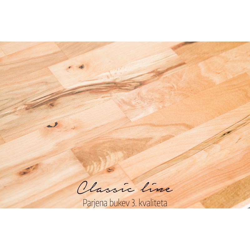 Klasični parket je produkt, ki velja za najbolj naravno talno oblogo katero se uporablja že stoletja. Je odličen toplotni in zvočni izolator ter enostaven za vzdrževanje. V široki ponudbi parketa, lastne proizvodnje lahko izbirate med vrstami klasičnega parketa drevesnih vrst hrasta, bukve in jesena. Na voljo je v treh kakovostnih razredih in različnih dimenzijah.