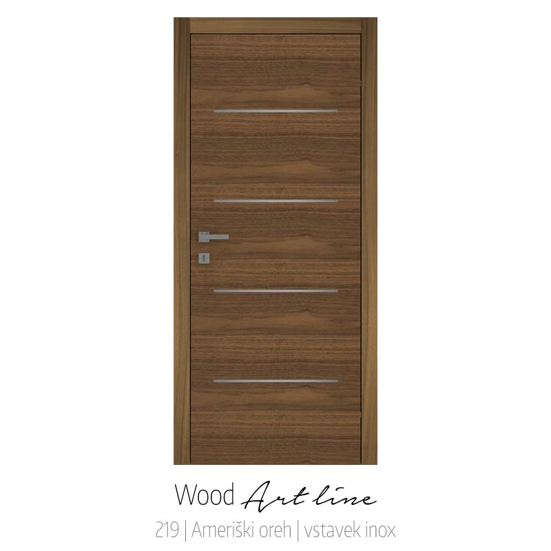 Značaj Wood Art linije se kaže v detajlih. Z uporabo kakovostnih vrst furnirja ter inox in furnir vstavkov ustvarjamo izbrana vrata po željah sodobnega posameznika.